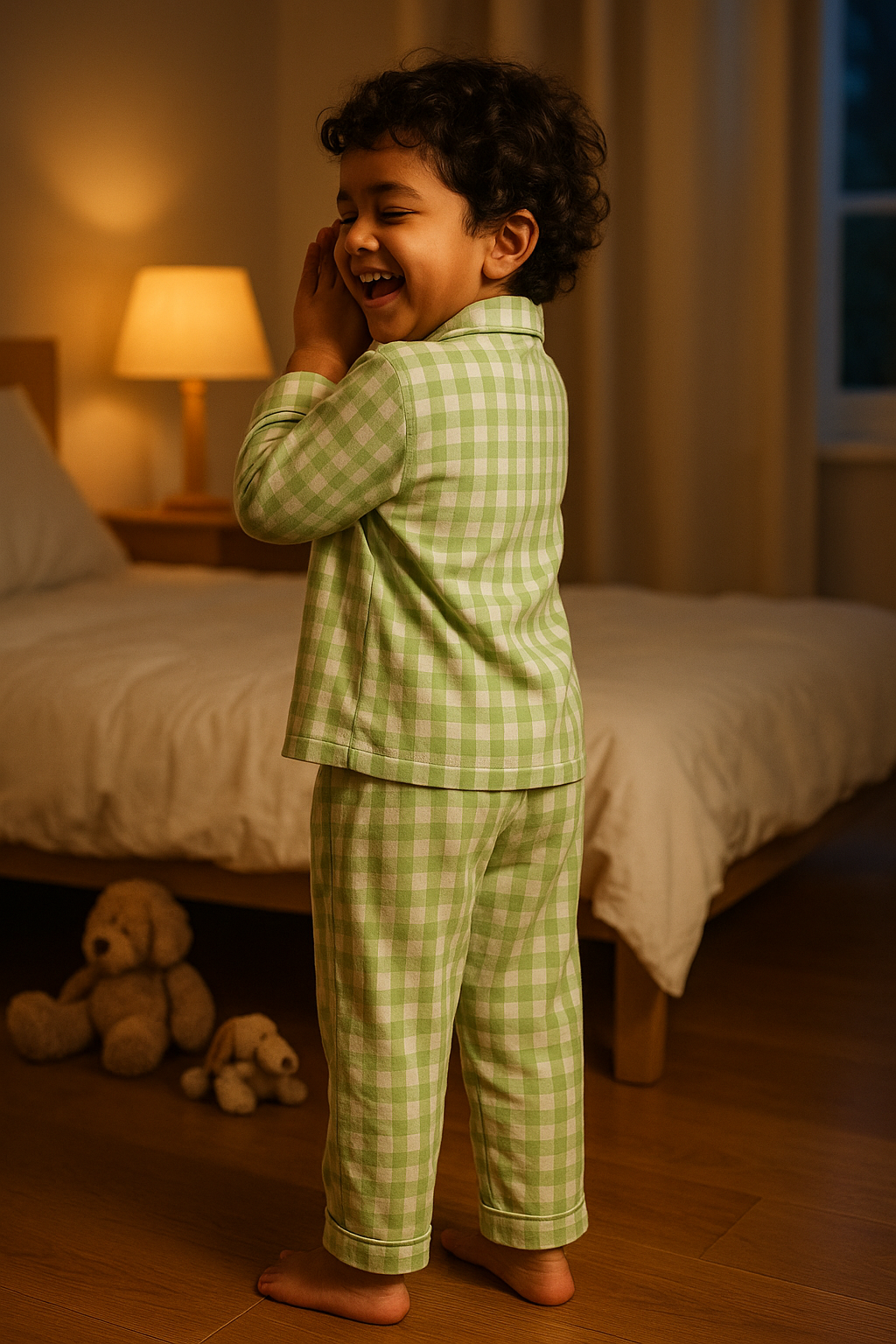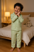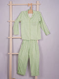 Kids Bamboo Green Checked Night Suit (Full Pants)