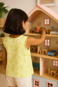 This vibrant, sleeveless green tshirt is designed for your little girl to wear anywhere, offering both style and comfort. With playful ruffle detailing on the shoulders, it adds a touch of fun to any outfit, making it perfect for casual outings or playdates. The soft fabric ensures all-day comfort, while the unique tie-and-dye pattern gives it a trendy, one-of-a-kind look.